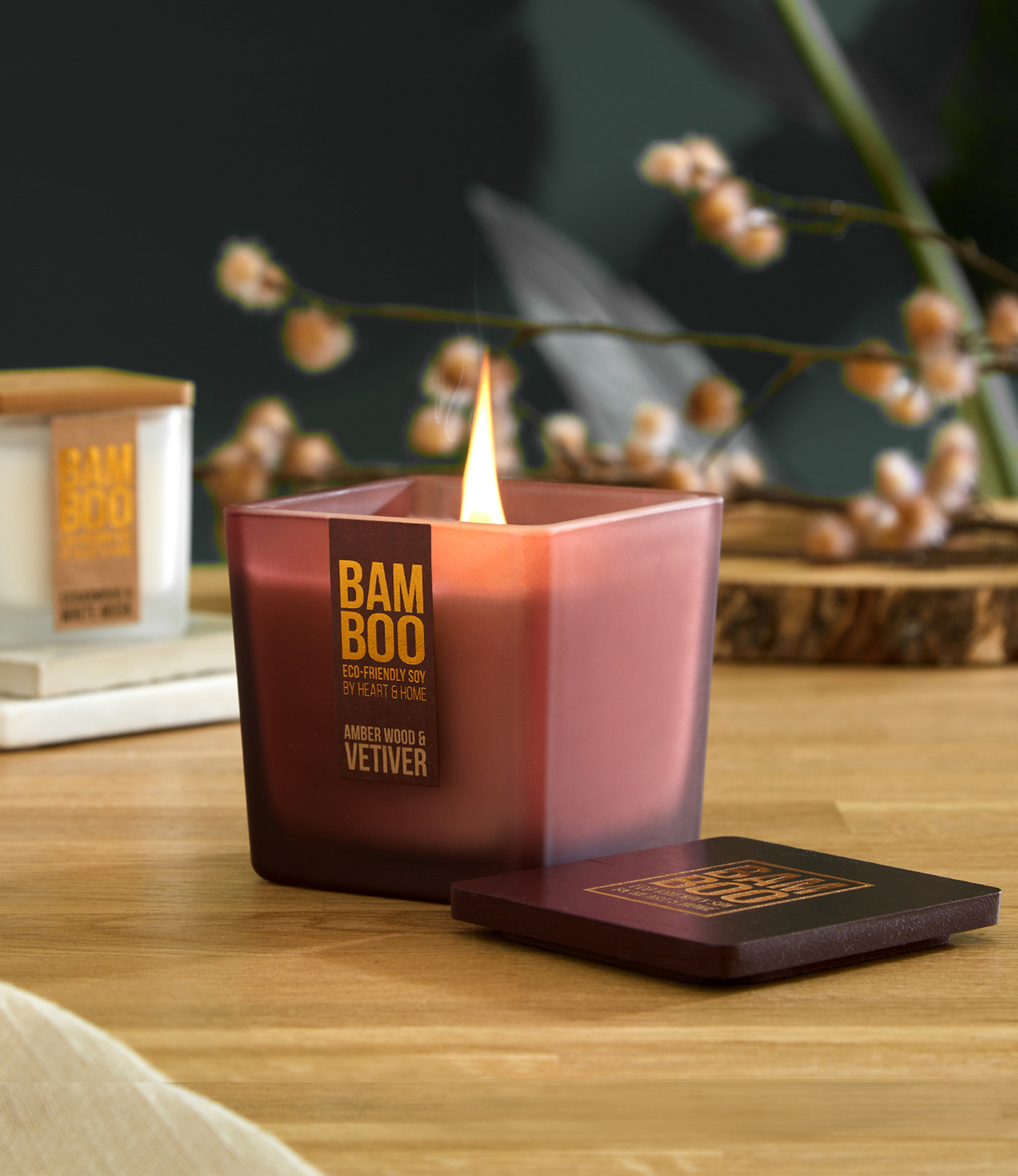 1. Tên sản phẩm: Nến Thơm Bamboo Large Jar Candle - Amber Wood & Vetiver - Heart & Home - 210g